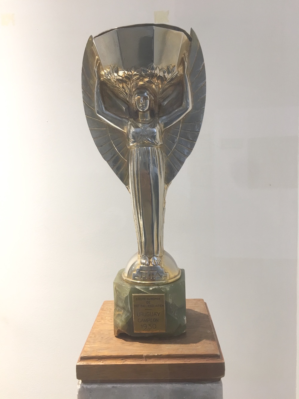 E muita coisa representativa daquele período está à disposição dos olhos e corações dos apaixonados por futebol: bandeiras, uniformes dos jogadores, bolas, medalhas e troféus... e aí abre-se um parêntesis para os mais valiosos deles, as réplicas da Taça Jules Rimet conquistadas pelo Uruguai em 1930 e 1950.