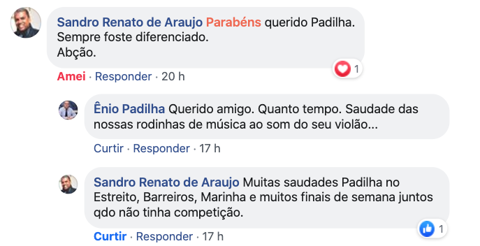 O Nunes respondeu "É um rapaz que treina que a gente, lá no atletismo, o Padilha". Aldírio então disse "Manda ele aqui, falar comigo. Vamos arrumar um trabalho pra ele, já que ele escreve bem."