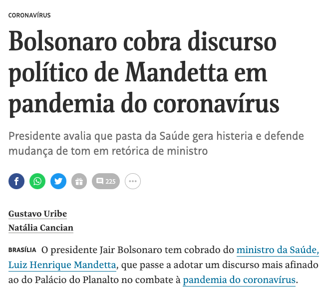 O que falta para alguém, próximo ao presidente, sugerir a ele que pare de tratar a crise provocada pelo novo coronavírus como uma "histeria criada pela grande mídia" e que comece a lidar com a questão (ou cuestão, como ele diz) sem tratá-la como uma conspiração internacional para atrapalhar o seu brilhante governo?