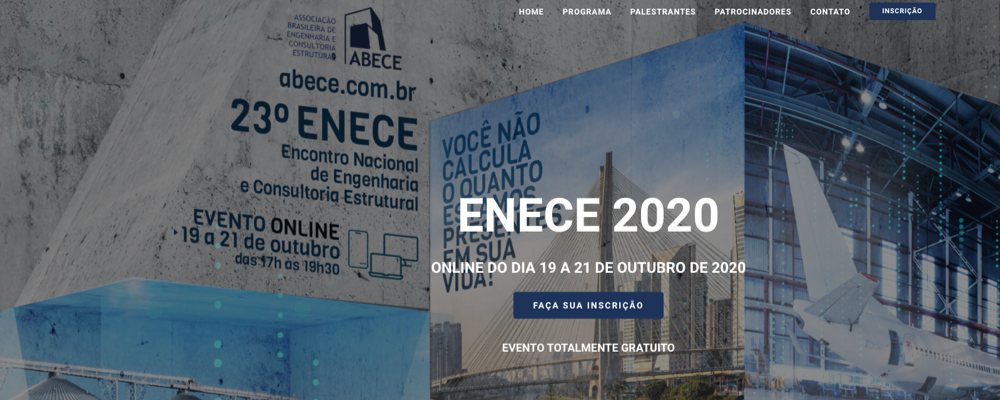 ABECE REALIZA MAIOR EVENTO ONLINE DE ENGENHARIA ESTRUTURAL (Publicado em 09/09/2020) Saiba quem são os convidados para as palestras on-line do maior evento da Engenharia Estrutural e faça já sua inscrição. É totalmente gratuita. Imagem: Divulgação O ENECE é um evento realizado anualmente pela ABECE, desde 1998, com o objetivo de reunir profissionais da área de projetos estruturais, construtores, estudantes e interessados em torno de temas atuais que influenciam o seu dia-a-dia. Profissionais renomados são convidados para abordar em palestras as principais novidades e tendências da engenharia estrutural. PADILHA, Ênio. 202x |