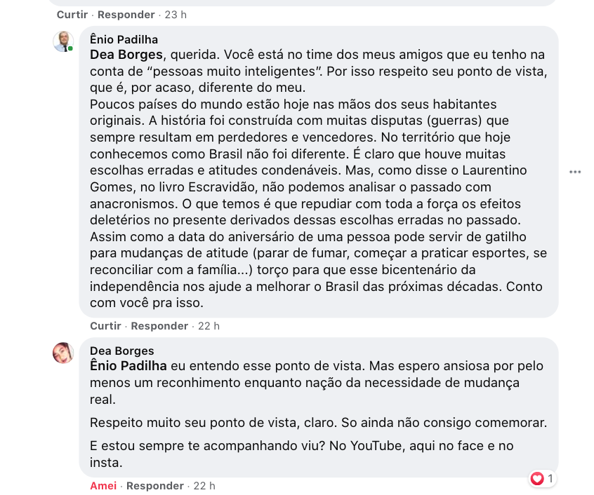 Pois bem, em 2022 teremos uma data cheia: 200 anos da Independência do Brasil. Temos alguma coisa pra comemorar? É claro que temos. E devemos! Teremos 23 meses, daqui até lá, para falar sobre tudo o que há de ruim no país. Não faltam mazelas. Mas custa dar uma trégua em setembro e comemorar o que temos para comemorar?