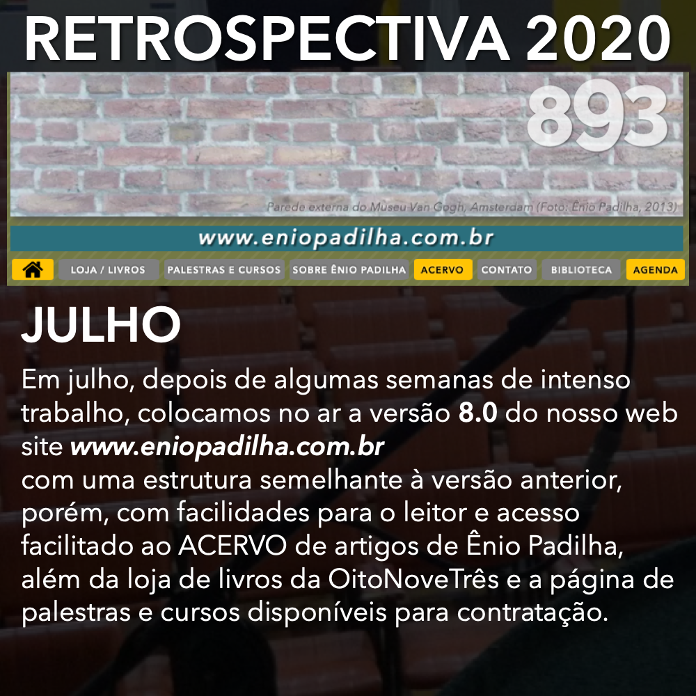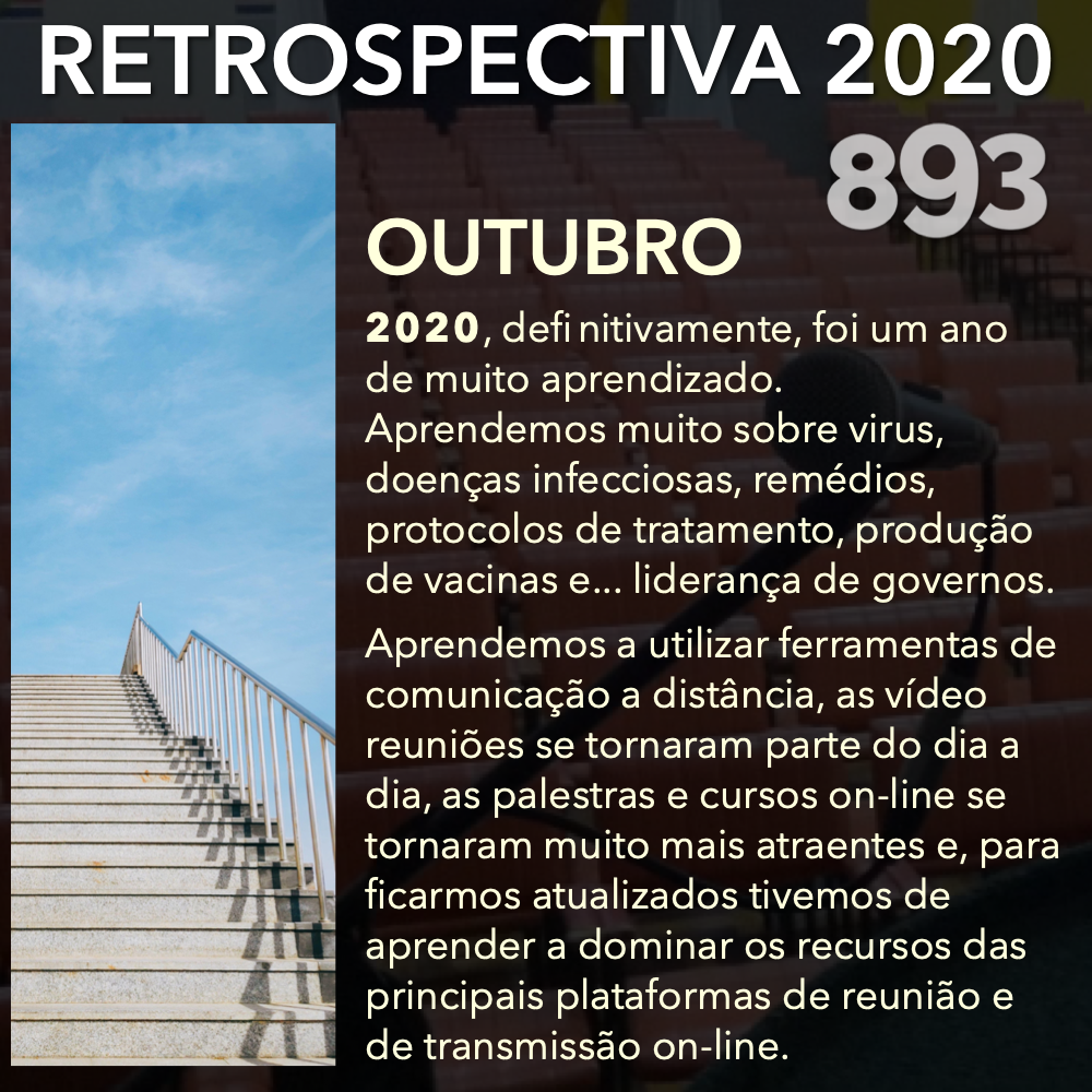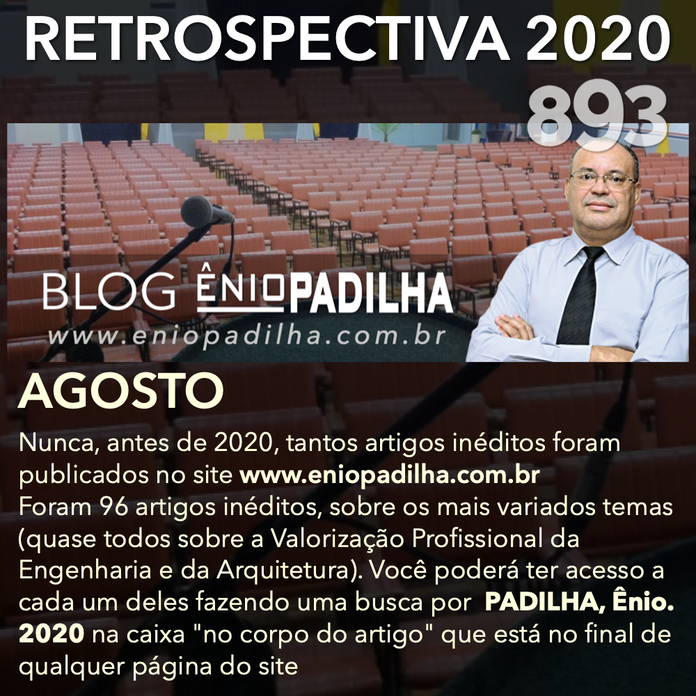 (Publicado em 17/12/2020) Nossa RETROSPECTIVA 2020 que você também poderá vem em vídeo da Live Especial de Fim de Ano no nosso canal do YouTube. Veja a Live de Encerramento realizada no canal do YouTube, ma qual toda esta retrospectiva foi apresentada em detalhes: https://youtu.be/8FwqytHfgV0 PADILHA, Ênio. 2020 |