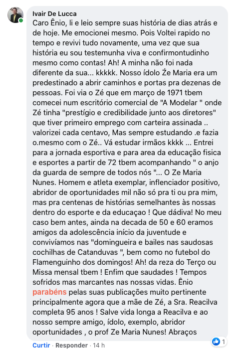 Mas, ele olhou nos meus olhos e viu alguma coisa. Viu uma possibilidade. Viu um futuro. E sentiu-se, de alguma forma, responsável por aquilo. Achou que deveria ajudar de alguma maneira. Isso era José Maria Nunes.