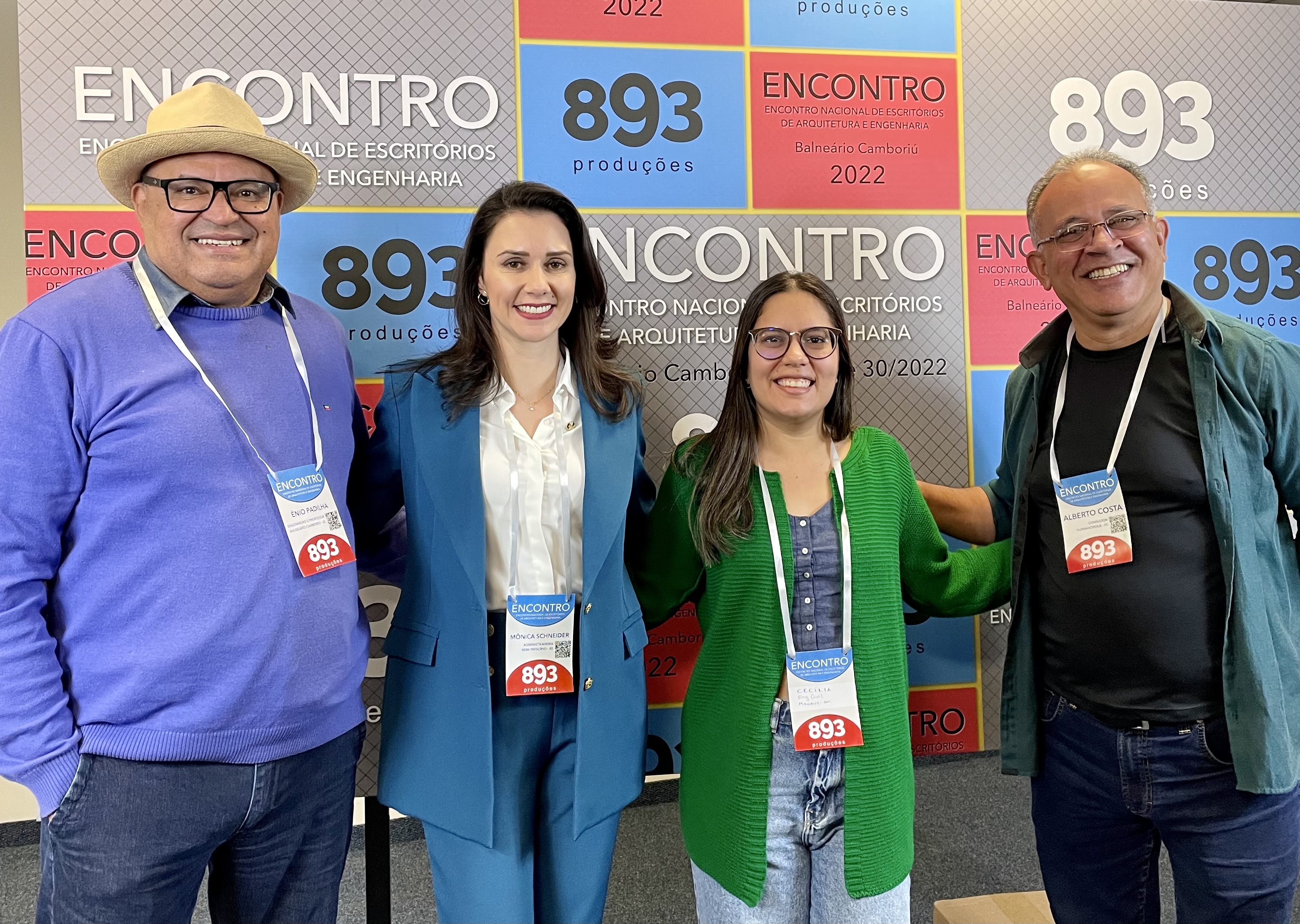 ENCONTRO 893 - 2022 (Publicado em 28/07/2022) A quarta edição do ENCONTRO NACIONAL DE ESCRITÓRIOS DE ARQUITETURA E ENGENHARIA foi realizada com sucesso em Balneário Camboriú, nos dias 28, 29 e 30/JUL/2022, contando com a participação de 14 inscritos de 3 estados brasileiros (Rio Grande do Sul, Santa Catarina e Amazonas). ENCONTRO 893 - 2022