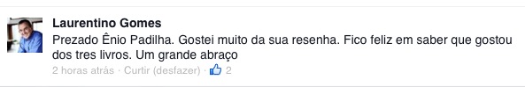 Laurentino Gomes tem realizado um belÃssimo trabalho no sentido de reduzir esse flagelo. Ele escreve livros de história com profundidade e rigor, mas dá aos seus livros uma abordagem jornalÃstica emoldurada por uma linguagem cinematográfica.
