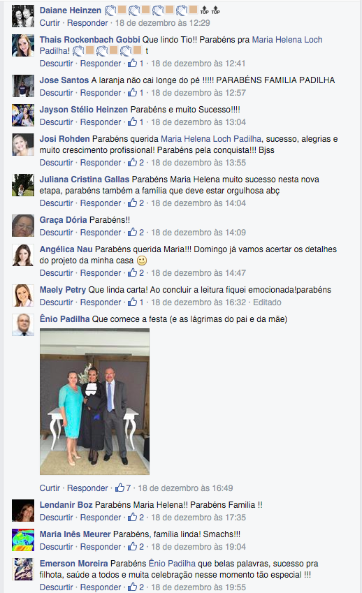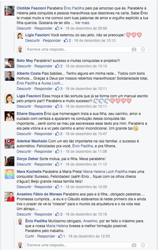 Parabéns Ênio Padilha pelo pai amoroso que és. Parabéns à Helena pela conquista e pessoa maravilhosa que descreves na carta. |