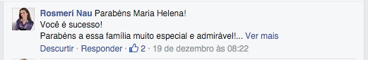 Comentário #5 — 18/12/2015 10:03 Clotilde Fascioni — Do lar — Florianópolis |