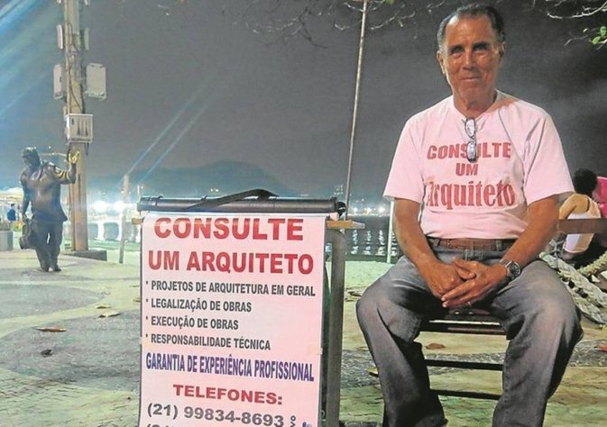 A CRISE NÃO É A EXPLICAÇÃO PARA TUDO (Publicado em 04/08/2016) Imagem: OitoNoveTrês O portal O GLOBO publicou no dia 03/08/2016 uma matéria sobre um arquiteto, de 75 anos, que tinha uma sala comercial no Centro do Rio e outra na casa espaçosa em que vivia em Niterói e que agora, "por causa da crise econômica", chegou à situação de oferecer seus serviços numa banca improvisada, na praia de Copacabana (você pode ler a matéria completa clicando sobre a foto aí do lado). Segundo ele, há três meses que vai lá, todos os dias e nada. Não consegue nenhum trabalho. PADILHA, Ênio. 2016 |