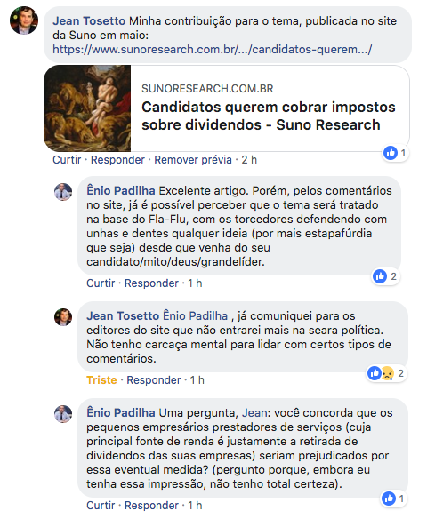 Qual é a lógica em taxar essa renda? Eu posso estar enganado, mas creio que essa ideia de cobrar impostos sobre os dividendos servirá apenas para tungar os bolsos dos pequenos empresários prestadores de serviços.